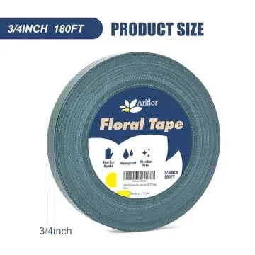 ARIFLOR Green Floral Tape - Flower Wrap Adhesive Tape Bouquet Stem Wrapping and Floral Crafts, Wedding Bouquet Tape - 3/4 inch Wide and 180 FT Long