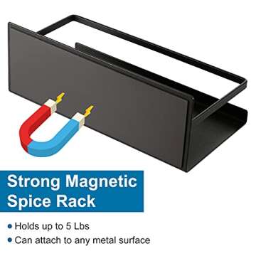 Arinster 2 Pack Magnetic Spice Rack Organizer - Single Tier Magnetic Spice Rack for Refrigerator with 8 Removable Hooks, Strong Magnetic Shelf for Kitchen,Metal Cabinet (Black)