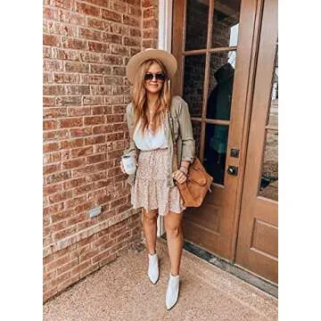 Arjungo Women's Floral Print High Waist with Drawstring Ruffle Flared Boho A Line Skater Mini Skirt Beige