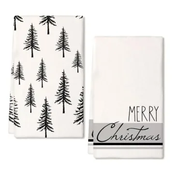 Show moreIntroducing the ARKENY Christmas Dish Towels – the perfect blend of style, functionality, and festive cheer for your kitchen! Measuring 18x26 inches, these premium towels are crafted from high-quality microfiber that is not only highly absorbent but also incredibly soft and durable. Featuring a charming black Christmas tree design set against a trendy grey stripe, these towels will elevate your holiday décor while providing exemplary functionality for all your kitchen needs. Whether you're drying dishes or cleaning up spills, these towels are designed to impress and hold up wash after wash, maintaining their vibrant look and feel. The sturdy sewing ensures that these towels will last through countless drying and cleaning tasks, making them an essential addition to your holiday kitchen. You’ll find them so appealing, you’ll want to use them all year round!