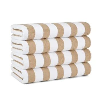 The classic white terry towel is complemented by vibrant colored cabana stripes, transforming it from a simple towel into a fashionable accessory. Available in a variety of eye-catching colors – including Gray, Orange, Blue, Green, Pink, and Beige – there's a towel suited for everyone’s taste. With a set of four towels, you're sure to have a chic option ready for every sandcastle you build or poolside gathering you attend.