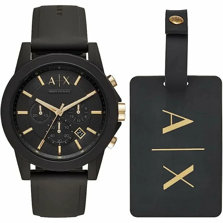 The Armani Exchange watch features a Black Dial and Scratch-Resistant Crystal, ensuring durability. The Round, Two-Tone Silicone 45MM Case adds a contemporary touch. With 50m water resistance, it's perfect for shallow water activities. Its lightweight build and ease of use make it an appealing gift choice.