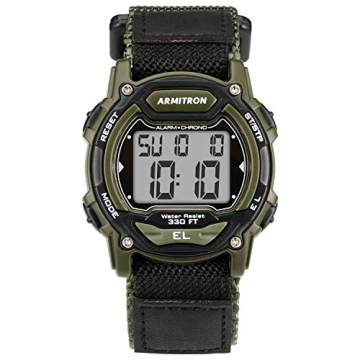 Show moreIntroducing the exceptional Armitron MD0699 military green resin watch, designed to be the perfect companion for anyone who embraces an active lifestyle. This rugged timepiece features a bold black top ring that beautifully contrasts with the military green resin case, embodying a mix of functionality and style. The LCD display showcases essential information including the time, seconds, day, and date, ensuring you are always on track no matter where your adventures take you. With a range of smart functionalities such as chronograph, lap time, alarm, dual time, military time, and backlight, this watch is designed to meet the diverse needs of fitness enthusiasts and outdoor adventurers alike.