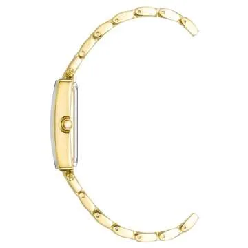 Show moreStep into elegance with the Armitron Women's Genuine Diamond Dial Bracelet Watch. This sophisticated timepiece combines luxury and functionality, making it the ideal accessory for any outfit. The watch showcases a slightly domed wall-to-wall mineral crystal lens that not only protects the exquisite champagne sunray dial but also adds depth and character. Highlighting this unique dial is a genuine diamond at the 12 o'clock position, providing a sparkling touch that is sure to catch the eye. The gold-tone hands and markers perfectly contrast against the warm dial, enhancing readability and style.