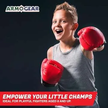 Show more Unleash the champion in your child with the ArmoGear Kids Boxing Gloves, expertly crafted for young fighters aged 8 and up. These gloves feature soft padding and high-quality PU leather, designed to ensure maximum protection and comfort. Each glove is built to absorb impact, making them perfect for safe play fighting and boxing matches. Whether your child is gearing up for an exciting round of the award-winning Boxing Battle game or simply practicing their punches on a heavy bag, these gloves are sure to be a favorite.