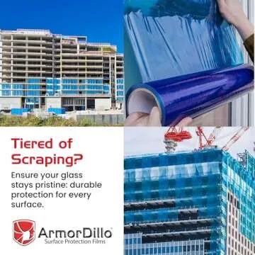 Show more Introducing the ArmorDillo Blue Protective Window Film—your ultimate ally in home improvement and construction projects. This superior protective window film is expertly designed to safeguard your windows and high gloss surfaces from unsightly scratches, harsh overspray, and stubborn stains from stucco or mortar. Whether you’re tackling indoor renovations or outdoor painting jobs, this versatile window privacy film provides 45 days of reliable UV protection, ensuring that your surfaces remain pristine throughout the duration of your projects. With our ArmorDillo film, you can work confidently, knowing your glass surfaces are shielded from damage and will look spotless when the job is done.