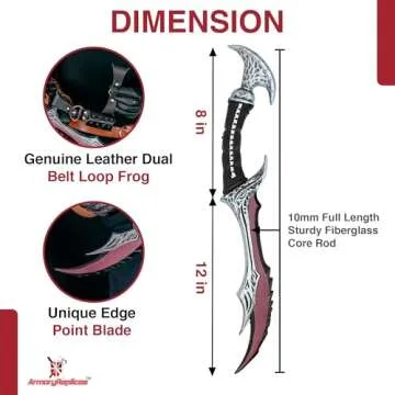 Armory Replicas™ Demon Sky Warrior Role Play Foam Dagger with Free Frog Combo | 19.5” Polyurethane Foam Blade with 10mm Inner Core | Silver, Black, Brown, Blue, Red Lacquer Finish