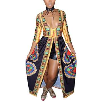 Aro Lora Women's African Print Deep V Neck 3/4 Sleeve High Slit Dashiki Long Maxi Dress Small Black