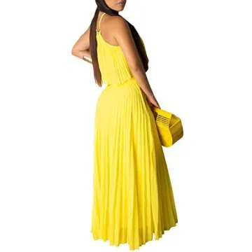 Aro Lora Women's Sexy Chiffon Sleeveless Ruffle Crop Top Pleated Long Skirt 2 Piece Maxi Dress X-Large Yellow