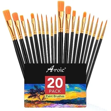 AROIC Acrylic Paint Brush Set - 20 Nylon Hair Brushes for Artists