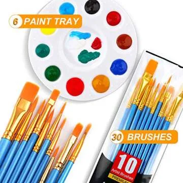 AROIC Acrylic Painting Set, 6 White Palettes and 3 Bags of 30 Brushes, Nylon Brush Head, Suitable for Oil Painting, Watercolor Painting, etc., Perfect Art Painting Set.