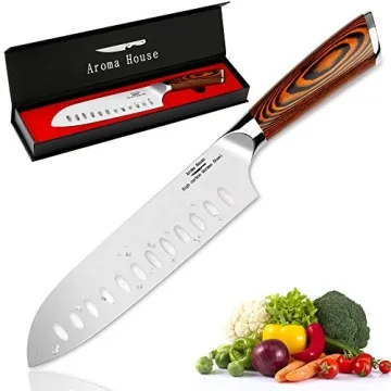 When compared to other kitchen knives on the market, the Aroma House Santoku Knife stands out thanks to its superior craftsmanship and thoughtful design. While many knives may come with a similar price tag, few offer the combination of materials and features, such as the hollow edge design and ergonomic handle, that this knife does. Competitors often use lower-grade materials that do not provide the same level of durability or comfort, making this knife a wise investment for those serious about cooking.