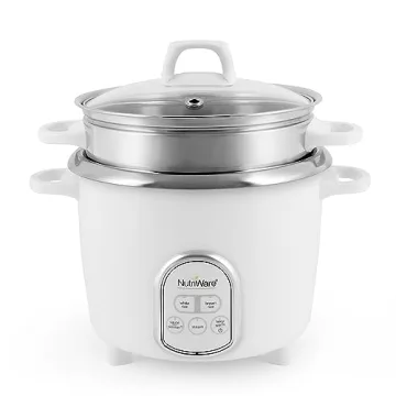 Additionally, the NutriWare comes with essential accessories including a stainless steel steam tray, rice measuring cup, and serving spatula, making it incredibly convenient right out of the box. With multiple cooking options including White Rice, Brown Rice, Steam, Sauté-Then-Simmer, and Keep-Warm, achieving culinary perfection has never been easier.