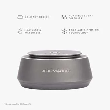 Aroma360 Smart Car Diffuser - Smart Aromatherapy Diffuser for Cars - Portable Air Diffuser - Air Freshener Diffuser for Car That Detects When Car is On - Smart Car Accessories - Silver