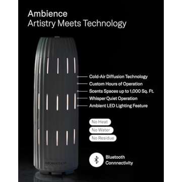 AromaTech Ambience Scent Diffuser for Essential Oil Blends & Fragrances – Waterless Scent Machine w/Bluetooth for Home, Bathroom Boutiques, Hotel, Spa – White Stone