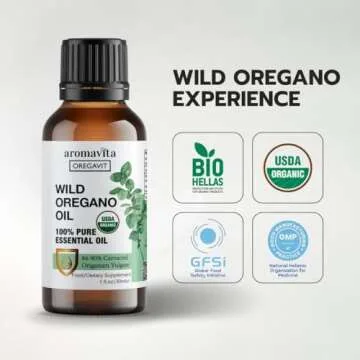 AROMAVITA Wild Oregano Oil Organic - 100% Pure Undiluted Organic Wild Oregano Oil with 86-90% Carvacrol, Immune Support - Plant-Based, Herbal Supplement - Vegan, Non GMO, Gluten Free, 1fl.oz/30ml