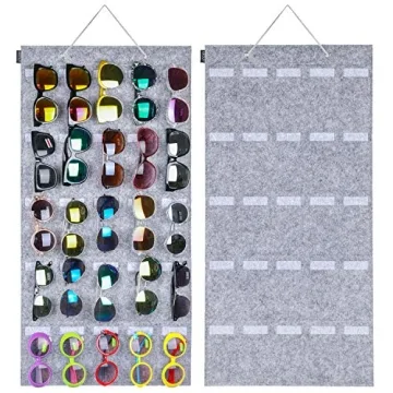 Show more Introducing the AROUY Sunglasses Organizer, where organization meets style! This thoughtfully designed storage solution is perfect for anyone with an expansive collection of eyewear. Made from high-quality felt material, it combines durability with sophistication, ensuring your sunglasses remain well-protected while being aesthetically pleasing. Its generous dimensions of 31.5” H x 15.7” W feature an impressive 25 slots tailored to hold each pair securely while preventing scratches and tangles.