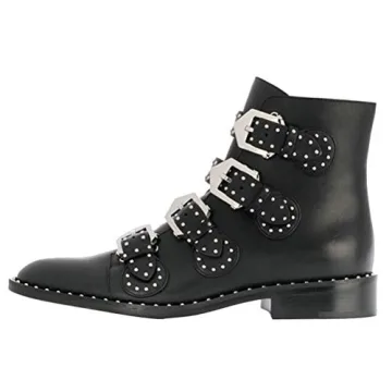 Introducing the Arqa Studded Ankle Boots for Women—your new wardrobe essential that effortlessly blends style and comfort. Crafted with genuine leather, these ankle booties stand out with their unique rivet and buckle embellishments, adding a bold statement to any outfit. With a low chunky heel of 1.57 inches, they provide the perfect lift while ensuring maximum comfort through prolonged wear. Designed to fit true to size, you can confidently step out knowing your fashion game is on point.