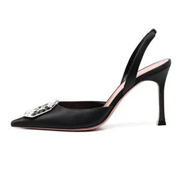 What truly sets these heels apart is the stunning oval crystal decorative buckle at the pointed end, capturing light and attention with every step you take. You’ll love how they enhance your outfit whether you’re dressing up for a wedding, heading to a party, or enjoying a date night. The easy slip-on style features elastic ankle straps that hug your feet securely, allowing you to slip them on and off effortlessly.