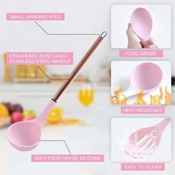 Not only is this cooking utensil set stylish and practical, but it is also designed with your health in mind. Made from BPA-free silicone, these utensils contribute to a safe cooking environment, while their striking rose gold handles combined with pink silicone heads make a fashionable statement in any kitchen. This set does not only serve utility but also doubles as a décor piece, enlivening your cooking space.