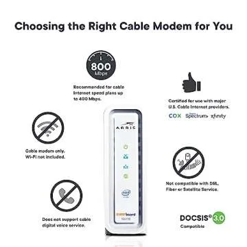 ARRIS SURFboard SB6190 DOCSIS 3.0 Cable Modem, Approved for Cox, Spectrum, Xfinity & others (White), Max Download Speed: 1.4 Gbps