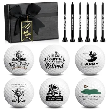 Show moreExperience the joy of giving with a unique and playful gift that will delight any retiring golfer in your life. Our funny retirement gifts golf balls set is an essential choice for celebrating a milestone that speaks of relaxation and leisure on the golf course. This delightful set includes 6 amusing golf balls and 6 matching tees, all beautifully packaged in an elegant gift box measuring 5.7 x 4.1 x 3.2 inches. It's not just another gift; it's a treasure chest brimming with humor and warmth, perfect for honoring someone who has devoted years to their career and is now ready to embrace the fun side of life.