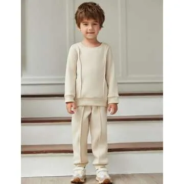 Show more This trendy boys' clothing set is the perfect combination of style and comfort, designed specifically for the fall and winter seasons. Crafted from durable, soft fleece fabric, this set ensures that your little one stays cozy without the irritation that rough materials can cause. The set includes a crew neck sweatshirt paired with elastic waist long pants, both adorned with charming designs and cute letters that add a fun touch to any outfit.