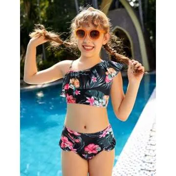 Arshiner Girls Two Piece Swimsuit Ruffles Flounce Printed Bikini Set Swimwear Girl Bathing Suits 4T Bathing Suits for Girls Deep Pink - Flower