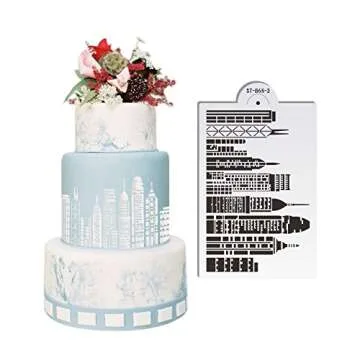 ART Kitchenware 1pcs 7.8"x 5" Skyscrapers Plastic Stencil Template for Cake Decorating Supplies Cake Border Decoration Mold Bakery Tools Semitransparent Dessert Tools ST-865-3