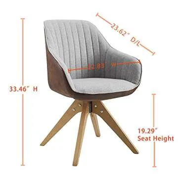 Art Leon Mid Century Modern Swivel Accent Chair with Beech Wood Legs, Desk Chair No Wheels, Armchair for Desk, Brown Leathaire Back Side and Gray Fabric Upholstered