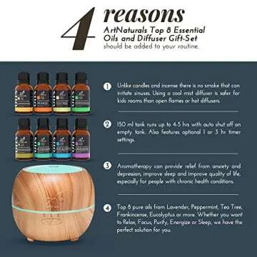 Art Naturals Essential Oil Diffuser and Top 8 Essential Oil Set - Create Your Aromatherapy Oasis