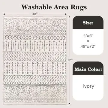 Art&Tuft 4x6 Rug, Super Soft Ultra-Thin Moroccan Washable Rug, Anti-Slip Backing Rugs for Living Room, Foldable Geometric Machine Washable Area Rug(4'x6', Ivory)