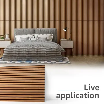 Show more Transform Your Space with Art3d Wood Slat Acoustic Panels! Discover the perfect blend of functionality and style with the Art3d 4 Pack 47.2 x 23.6 in. Wood Slat Acoustic Panels. Designed specifically for enhancing acoustic quality in homes, offices, or studios, these fluted panels provide exceptional sound absorption while bringing a modern aesthetic to any environment. The unique wooden slat design delivers a warm, natural finish, enhancing your room's elegance and charm. Each panel effectively reduces noise, creating a serene atmosphere for work or relaxation.