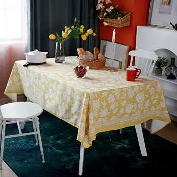 ARTABLE Rectangle Summer Tablecloth Printed Flower Grass and Vintage Floral Patterns Table Cloth for Easter Tablecloth Picnic Outdoor Home Holiday Long Dining Kitchen (Yellow, 52 x 70 Inch)