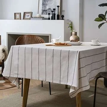 Show more Transform your dining experience with this exquisite white striped tablecloth, meticulously crafted from a sumptuous blend of high-quality cotton and linen. The fabric promises a soft and smooth texture while being sturdy and durable, ensuring it won’t fade or succumb to wrinkles over time. Each stitch reflects the premium quality and uniqueness of the craftsmanship that goes into every piece, with its beautiful appearance and elegant printing setting the stage for any meal.