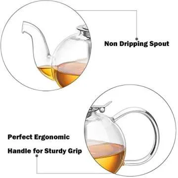 Artcome 1000ml / 34oz Glass Teapot with Removable Infuser, Stovetop Safe Teapot, Blooming and Loose Leaf Tea Pots