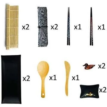 Elevate your home dining experience with the Artcome Sushi Making Kit, a comprehensive DIY sushi set that brings the essence of Japanese culinary traditions right to your kitchen. This complete 14-piece set includes everything you need to create mouthwatering sushi from the comfort of your home. With beautifully crafted components like 2 bamboo rolling mats, 2 sushi plates, 2 sauce dishes, 2 pairs of chopsticks, 2 chopsticks holders, 2 tableware bags, a rice paddle,...