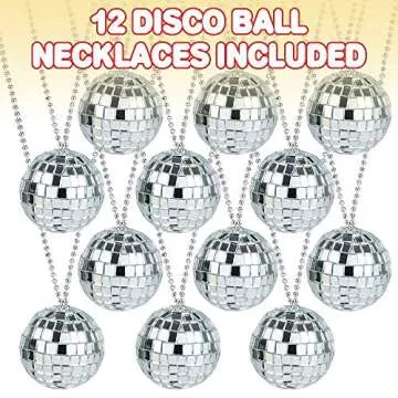 ArtCreativity 12 Pieces Mirror Disco Ball Necklaces - Disco Theme 70s Party Decorations, Photo Booth Props, Dance Party Favors for Kids & Adults