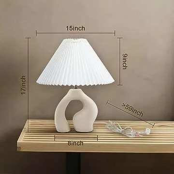 ArtCredit Pleated Ceramic Table Lamp for Bedroom - 3 Way Dimmable, with USB Port & 3W LED - Touch Control Modern Lamp with Ceramic Base and Pleated Lampshade, Perfect for Living Room & Home Decor