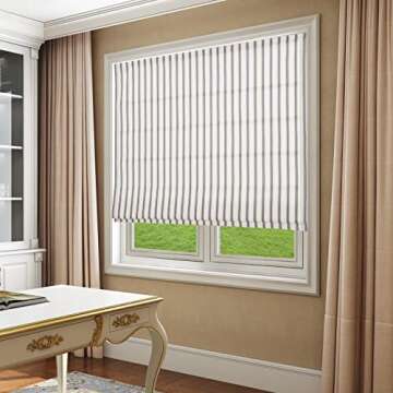 Show moreIntroducing the perfect blend of elegance and functionality, our Stripe Cordless Roman Shades from an acclaimed brand that specializes in quality window treatments. Designed to seamlessly integrate into any room, these shades bring a breezy and casual touch, transforming your space into a cozy retreat. The shades are custom-made to your specifications, with precise measurements down to 1/16th of an inch, ensuring a perfect fit for any window - be it in your living room, kitchen, bedroom, or even bathroom.
