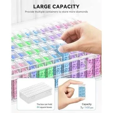 Show moreStep into the world of effortless crafting with the ARTDOT Diamond Painting Storage Containers, a must-have for every diamond painting enthusiast. This innovative storage solution not only simplifies your creative process but also enhances your experience by offering a smart organization system that keeps everything neatly arranged. With 64 transparent containers delicately designed for optimal functionality, each container holds up to 7 grams or about 1400 diamonds, ensuring that you have ample space for all your beads and art supplies.