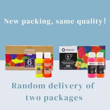 Show more Introducing the Artecho Acrylic Neon Paint Set, the perfect companion for artists and crafters alike! This vibrant collection includes six stunning neon colors, each meticulously packaged in a 2-ounce (59ml) bottle with a user-friendly flip-top lid. Whether you're looking to enhance your artwork or explore new creative avenues, these paints are designed to ignite your imagination and elevate your projects.