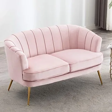 Show more Introducing the **Artechworks Contemporary Velvet Loveseat Chair**, a stunning blend of modern elegance and classic charm, perfect for any contemporary space. This exceptional piece features a luxurious velvet upholstery that immediately elevates your living room, bedroom, or home office decor. The delicate light pink hue combined with golden-finished metal legs adds a touch of sophistication, ensuring this loveseat serves as both a statement piece and a cozy seating option. Measuring at 50" in width, 28.35" in depth, and 28.74" in height, it's designed for small spaces without compromising on style or comfort.