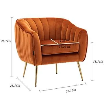 Show more Introducing our unique luxe accent chair, a perfect blend of elegance and comfort. Crafted with a sturdy metal base and upholstered in a chic contrast color fabric, this accent chair is designed to infuse a modern touch into your home décor. Whether placed in a living room, bedroom, or office, it transforms any space into a cozy ambiance. The optimal dimensions of 28.15”D x 28.15”W x 28.74”H make it exceptionally versatile, serving as a vanity chair, side chair, or club chair. The combination of a wooden frame and high-density sponge cushioning not only enhances durability but also ensures a comfortable seating experience.