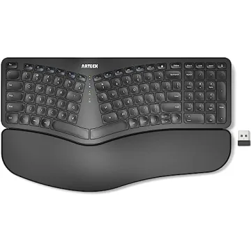 Show moreExperience unparalleled comfort and efficiency with the Arteck Split Ergonomic Keyboard. Designed specifically for those who spend long hours typing, this innovative keyboard features a split design that positions your wrists and forearms in a natural, relaxed stance, reducing strain and promoting a healthier posture. The soft cushioned wrist rest further enhances your typing experience, allowing you to work comfortably for extended periods. With a remarkable 6-month battery life on a single charge, you can focus on your work without the hassle of constant recharging. Whether you're a professional writer, programmer, or casual user, the Arteck Split Ergonomic Keyboard is the perfect addition to your desktop setup.