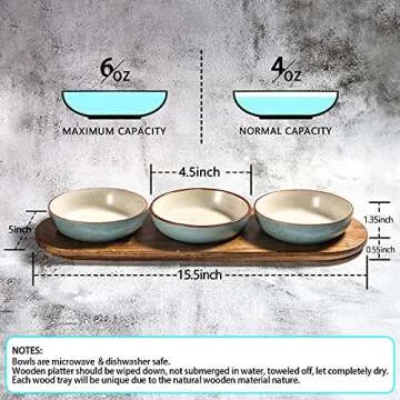 Experience the versatility of a substantial yet sleek design as this platter serves up appetizers, condiments, or even seasonal treats during holidays. Measuring perfectly for the center of your dining table, it’s the ideal choice for showcasing candies or BBQ sauces. The roomy 4.5-inch ceramic bowls are perfect for dips, portion control, or even individual snacks, making it a go-to for memorable gatherings.