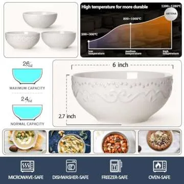 Show more Introducing the exquisite Artena Soup and Cereal Bowls, the perfect blend of practicality and elegance for your home. Crafted from high-quality ceramic, these bowls not only pass the SGS food grade test but also ensure a healthier dining experience for you and your family. Whether you're warming up your favorite soup or serving a colorful salad, these bowls are microwave, oven, freezer, and dishwasher safe—truly versatile dining companions!