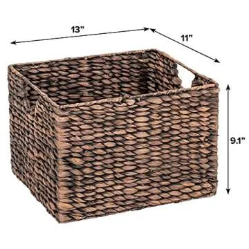 Artera Wicker Cube Storage Baskets - Set of 3, Woven Shelf Basket for Organizing, Natural Storage Bins with Handles for Pantry Living Room, Under Shelf Basket, 13" x 11" x 9" (Dark Brown)