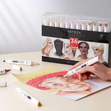ARTEZA Skin Tone Alcohol Markers Set of 36 Tones, Everblend Sketch Pens with Dual Tips, Fine and Broad Chisel