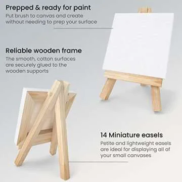 ARTEZA Mini Canvases for Painting, 3x3 Inches, Pack of 14 with Easels